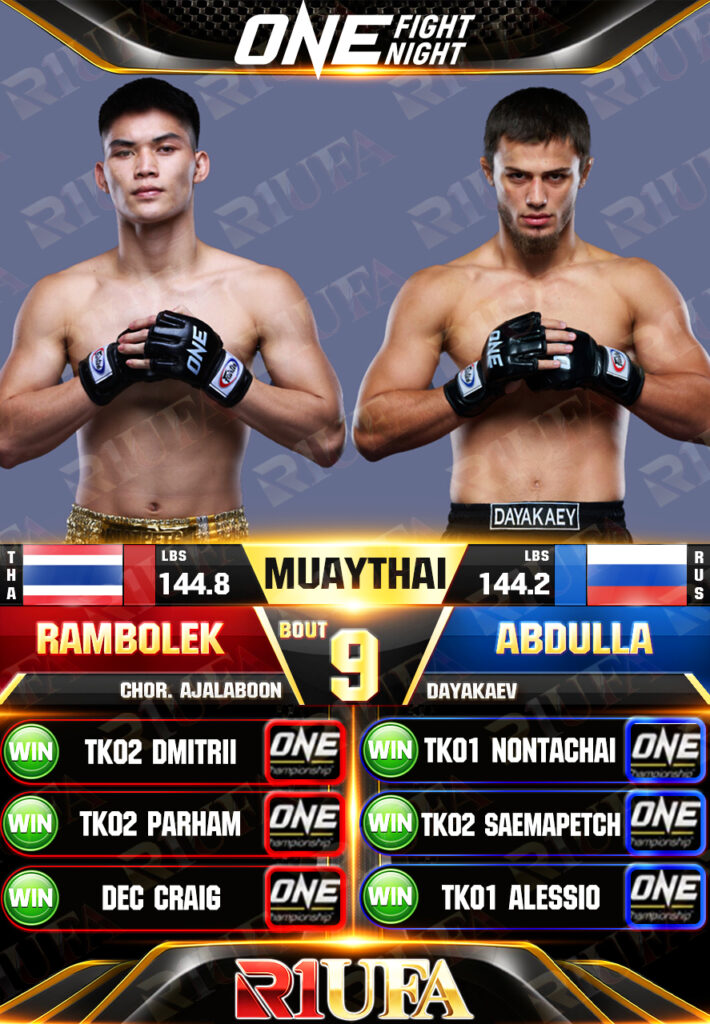 | คู่ชก | แรมโบ้เล็ก ฉ.อจลบุญ | อับดุลลา ดายาคาเอฟ |