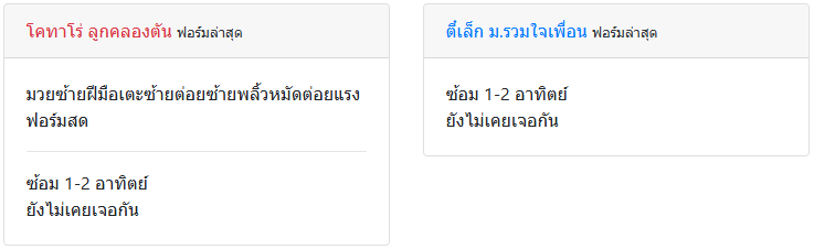 | ชกมาแล้ว | ≥ 30 ครั้ง | ≥ 30 ครั้ง |