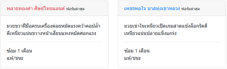 | มวย | มวยเข่า+มวยฝีมือ | มวยเข่า+มวยฝีมือ |
