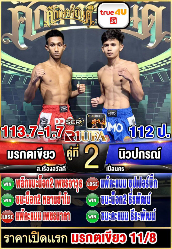| คู่ชก | มรกตเขียว ส.เรืองสวัสดิ์ | นิวปกรณ์ เปิ้ลนคร |