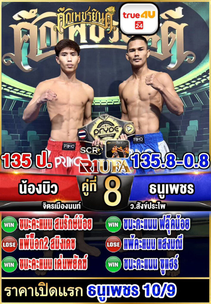 | คู่ชก | น้องบิว จิตรเมืองนนท์ | ธนูเพชร ว.สังข์ประไพ |
