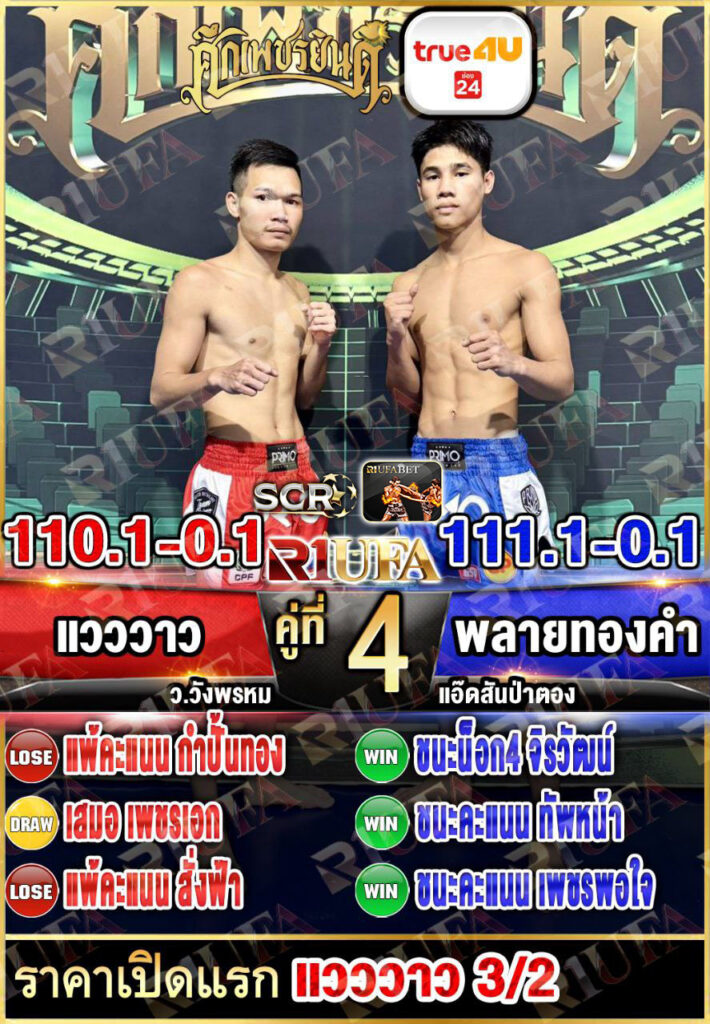 | คู่ชก | แวววาว ว.วังพรม | พลายทองคำ ศิษย์ไทยแลนด์ |