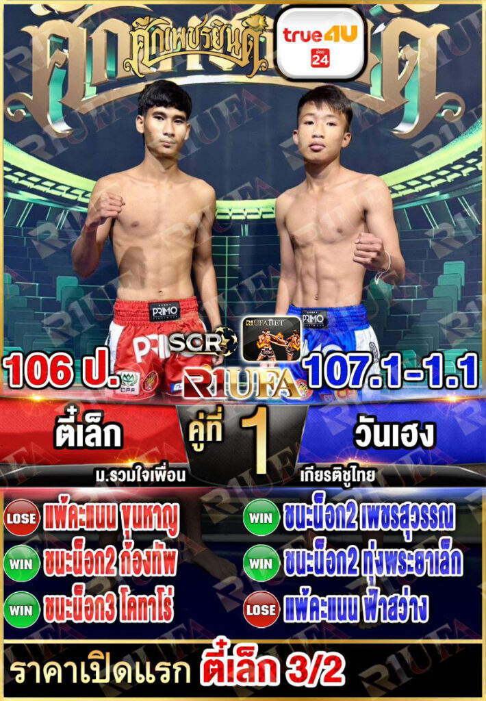 | คู่ชก | ตี๋เล็ก ม.รวมใจเพื่อน | วันเฮง เกียรติชูไทย |