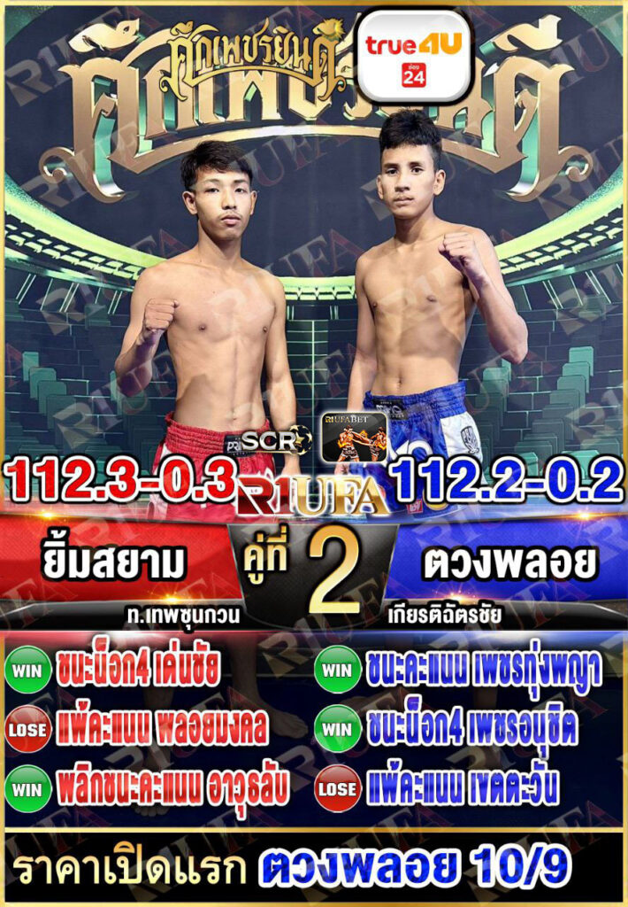 | คู่ชก | ยิ้มสยาม ท.เทพซุนกวน | ตวงพลอย เกียรติฉัตรชัย |
