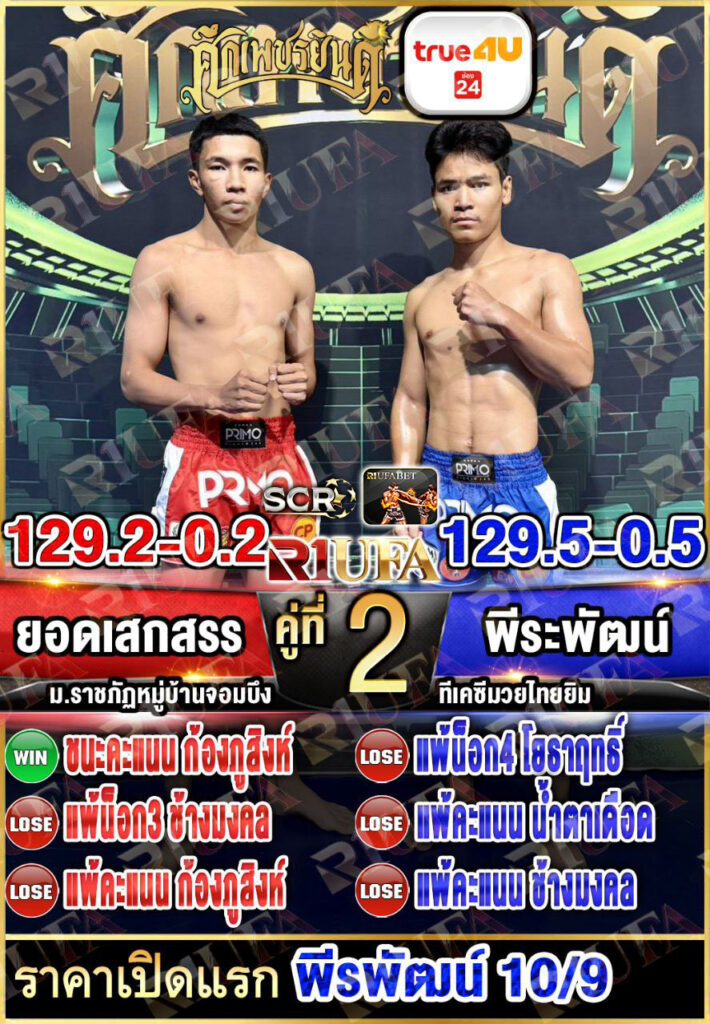 | คู่ชก | ยอดเสกสรร ม.ราชภัฎหมู่บ้านจอมบึง | พีระพัฒน์ ซี.เค.มวยไทยยิม |