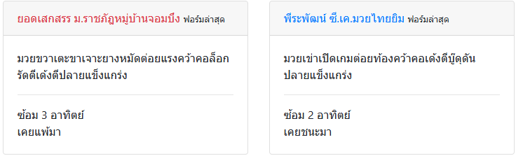 | มวย | มวยเข่า+บู๊ | มวยขวา+มวยเข่า |