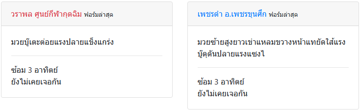| ชกล่าสุด | 3 เดือน 15 วัน | 3 เดือน 3 วัน |