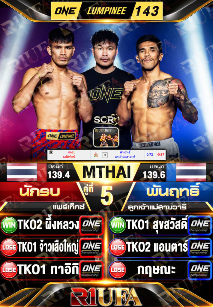 | คู่ชก | นักรบ แฟร์เท็กซ์ | พันฤทธิ์ ลูกเจ้าแม่สายวารี |