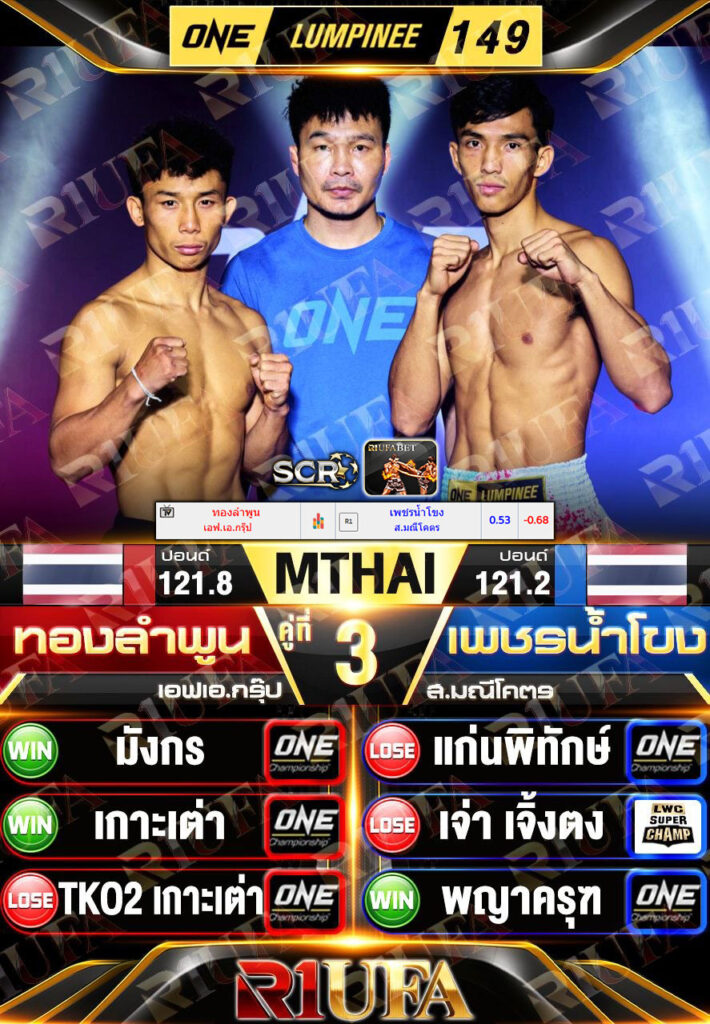 | คู่ชก | ทองลำพูน เอฟ.เอ.กรุ๊ป | เพชรน้ำโขง ส.มณีโคตร |