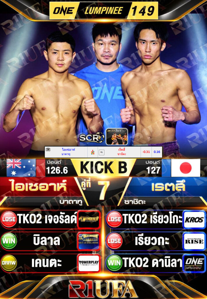 วิเคราะห์ 3 เมษายน 2026 • โดย Muay789 วิเคราะห์ผลมวย ศึก ONE ลุมพินี 149 ไอเซอาห์ บาดาทู vs เรตสึ ซาชิดะ 03/4/2569🥊 ศึกวันแชมเปียนชิพลุมพินีวิเคราะห์ผลมวยวันที่ 03/04/2569 เวลา 18:30 น.พิกัด 135.0 ปอนด์. คู่ชกไอเซอาห์ บาดาทูเรตสึ ซาชิดะชกล่าสุด––อายุ––พิกัดวันนี้135.0135.0 ← บทความก่อนหน้า วิเคราะห์ผลมวย ศึก ONE ลุมพินี 149 พญาครุฑ ส.อิสระโชติ vs อิกโก โอตะ 03/4/2569🥊 บทความถัดไป → วิเคราะห์ผลมวย ศึก ONE ลุมพินี 149 เดลฟาน ดวี ซาตริโอ vs แบล็คชิชา โซทาโร 03/4/2569🥊