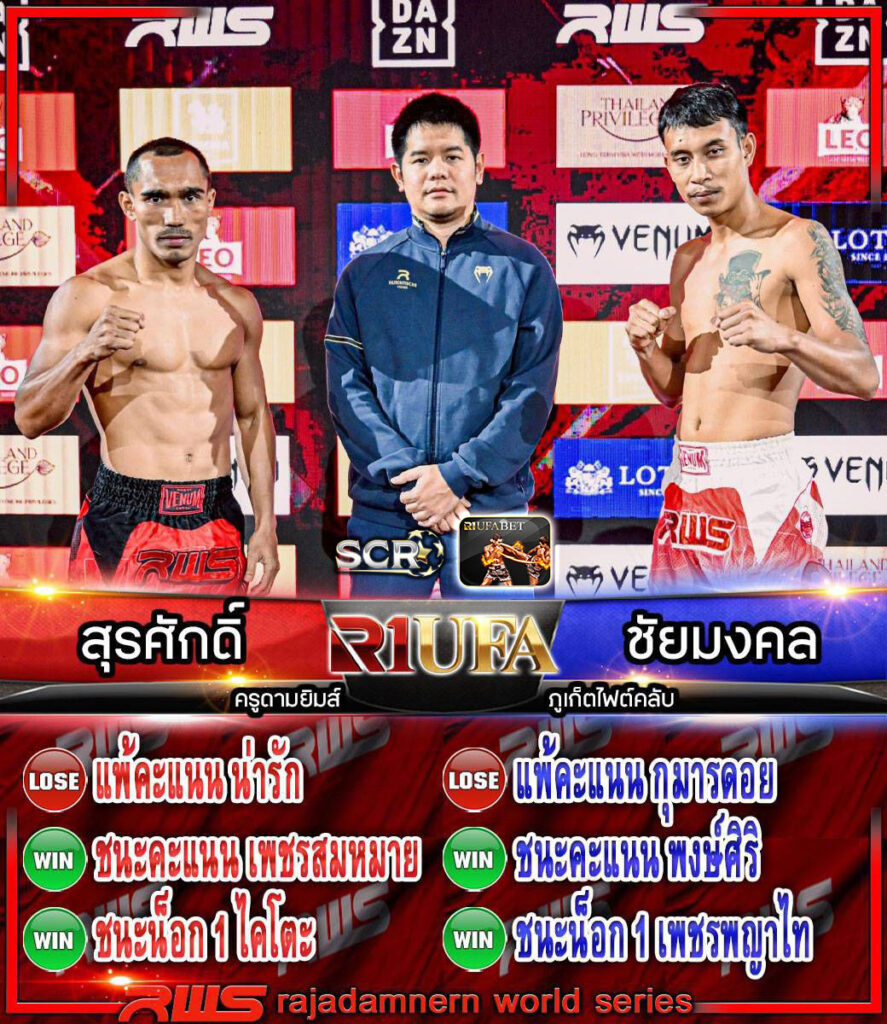 | คู่ชก | สุรศักดิ์ ครูดามยิมส์ | ชัยมงคล ภูเก็ตไฟต์คลับ |