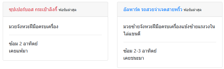 | ชกมาแล้ว | ≥ 30 ครั้ง | ≥ 60 ครั้ง |