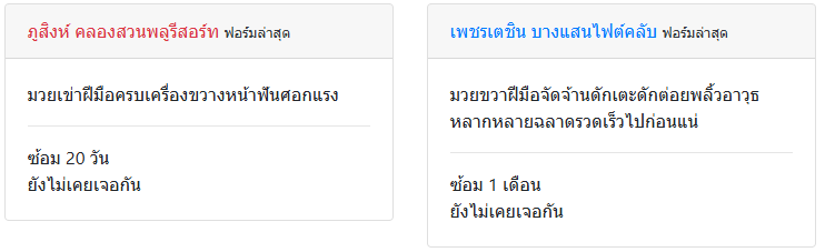 | ชกล่าสุด | 1 เดือน 11 วัน | 1 เดือน 4 วัน |