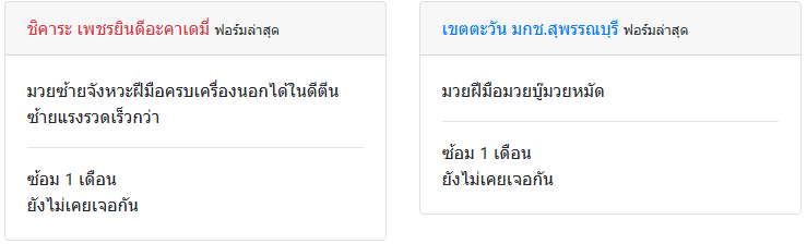 | ชกล่าสุด | 1 เดือน 18 วัน | 27 วัน |