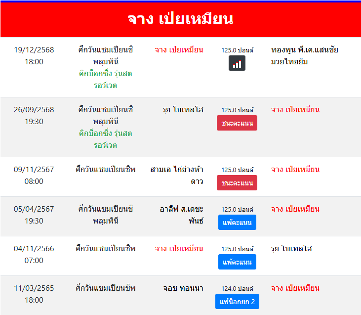 วิเคราะห์ 18 ธันวาคม 2025 • โดย Muay789 วิเคราะห์มวย ONEลุมพินี 137 จาง เป่ยเหมียน vs ทองพูน พีเค.แสนชัย 19/12/2568🥊 🥊ศึกวันแชมเปียนชิพลุมพินี 137🥊วิเคราะห์ผลมวยวันที่ 19/12/2568 เวลา 19:30 น.จาง เป่ยเหมียน vs ทองพูน พีเค.แสนชัยพิกัด 125.0 ปอนด์. ← บทความก่อนหน้า วิเคราะห์มวย ONEลุมพินี 137 กิ่งซางเล็ก ว.คำชำนาญ vs สุริยันต์เล็ก พ.เย็นยิ่ง 19/12/2568🥊 บทความถัดไป → วิเคราะห์มวย ONEลุมพินี 137 โจ ณัฐวุฒิ vs โมฮัมหมัด เซียซารานี 19/12/2568🥊