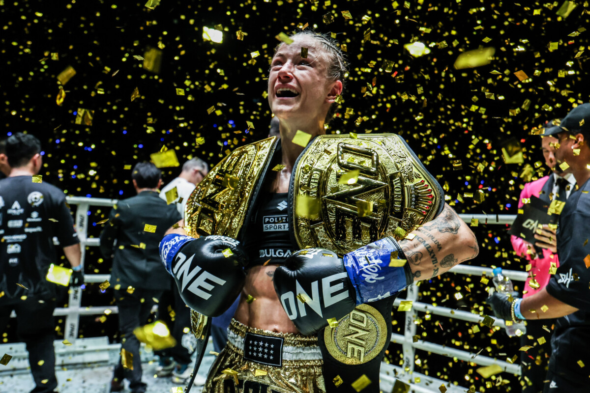 การรีแมตช์เดือดของคู่เอกระหว่าง “แจ็กกี บุนตัน” แชมป์โลก ONE คิกบ็อกซิ่ง รุ่นสตรอว์เวต (115-125 ป.) จากสหรัฐอเมริกา ทำหน้าที่ป้องกันตำแหน่งครั้งแรกกับผู้ท้าชิงคู่ปรับเก่า “สเตลลา เฮเมตซ์เบอร์เกอร์” แชมป์โลก ONE มวยไทย รุ่นเดียวกัน จากออสเตรีย ที่ข้ามสายมาล่าเข็มขัดเส้นที่สอง